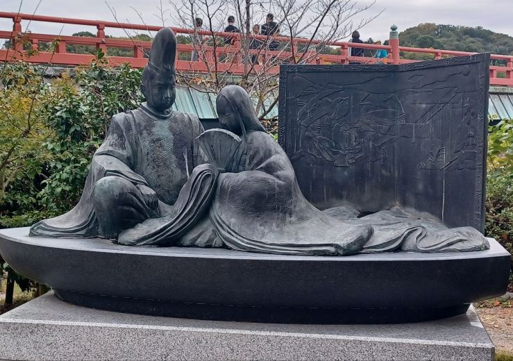 I went to the Tale of Gengi museum, which was a big disappointment. I did get a photo of a statue that stands beside the river. It depicts the significant characters in those last chapters. They are setting out in a small boat on the river. There is something sad about it, which is appropriate.