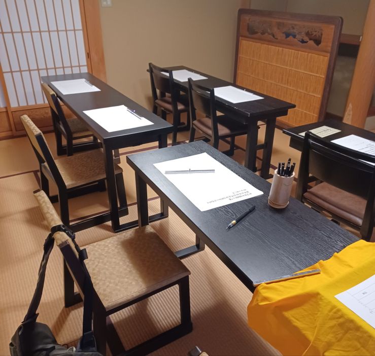 We walked down a few corridors in our slippers. He slid open a shoji screen to reveal the small room where surtra copying took place. He pointed to a place to sit and left me to figure out how to copy a sutra.
